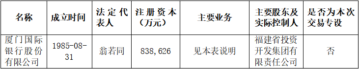 (一)廈門國際銀行股份有限公司為非上市金融機構,其基本信息如下: